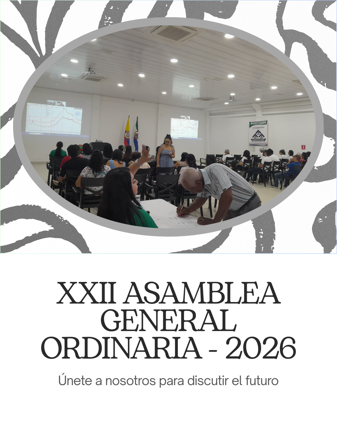 Acuerdo N° 001 Convocatoria Asamblea General Ordinaria XXII Asamblea General Ordinaria Ver Convocatoria Asamblea General Ordinaria de Asociados 2026 Aviso de convocatoria para asamblea 2026 Ver Listado de Asociados Inhábiles XXII ASAMBLEA ORDINARIA Ver Convocatoria de revisión fiscal Ver ver